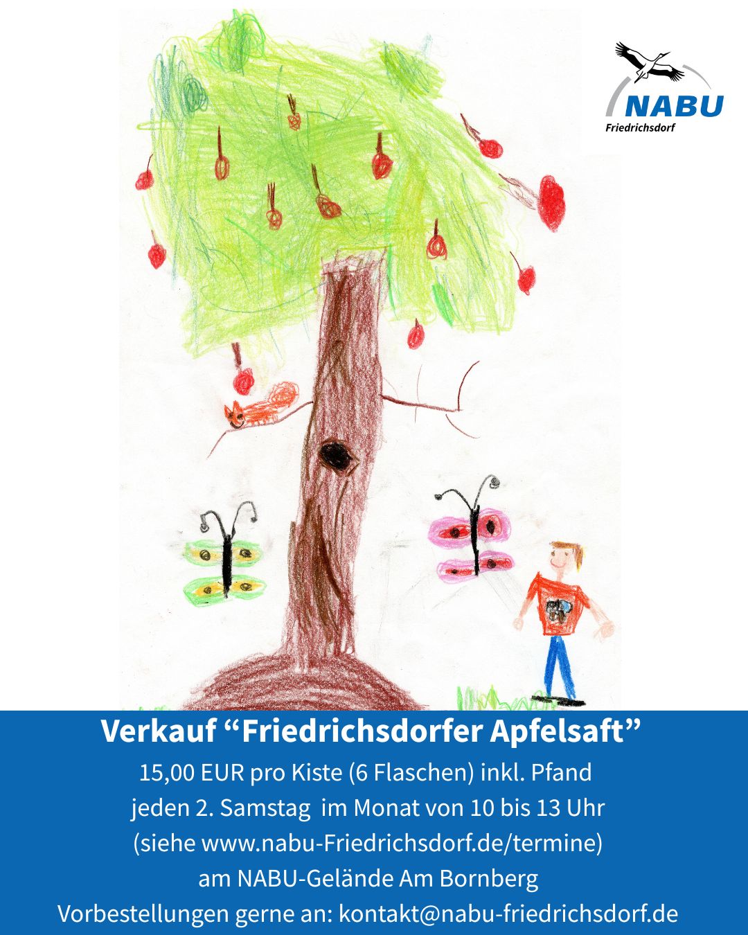 Ja - es gibt ihn noch: Den leckeren Friedrichsdorfer-Apfelsaft vom Oktober 2025 ! Interessierte können sich gerne eindecken: Am NABU-Haus, zwischen 10:00 bis 13:00 Uhr, 15,-€ / Kasten – solange der Vorrat reicht.